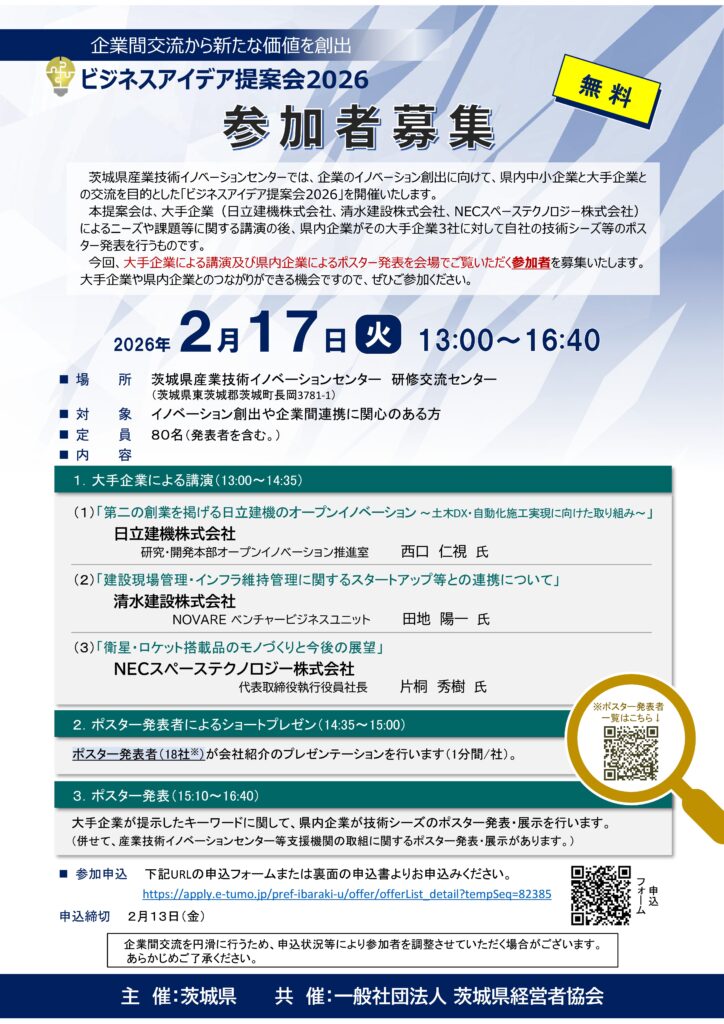 【茨城県産業技術イノベーションセンター】2/17「ビジネスアイデア提案会2026」のご案内
