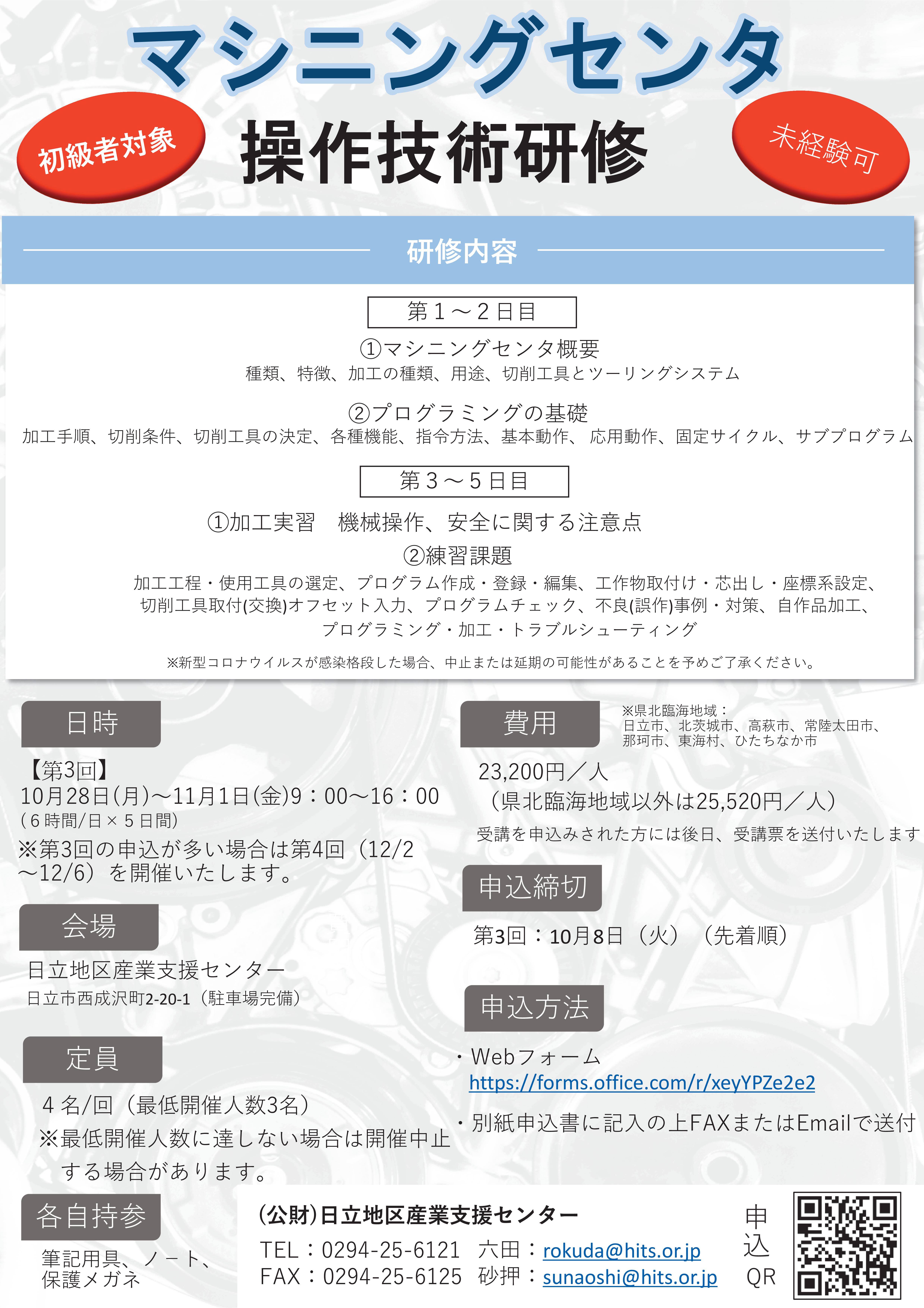 >>>「マシニングセンタ操作技術研修」のご案内