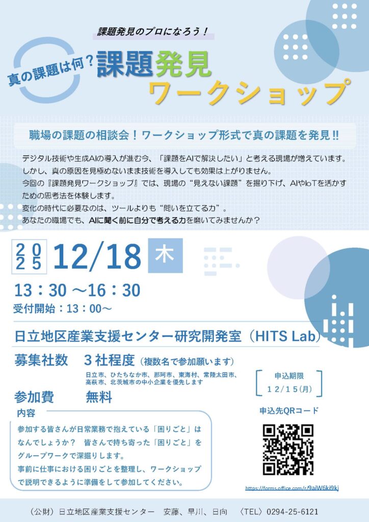 今回の『課題発見ワークショップ』では、現場の“見えない課題”を掘り下げ、AIやIoTを活かすための思考法を体験します。