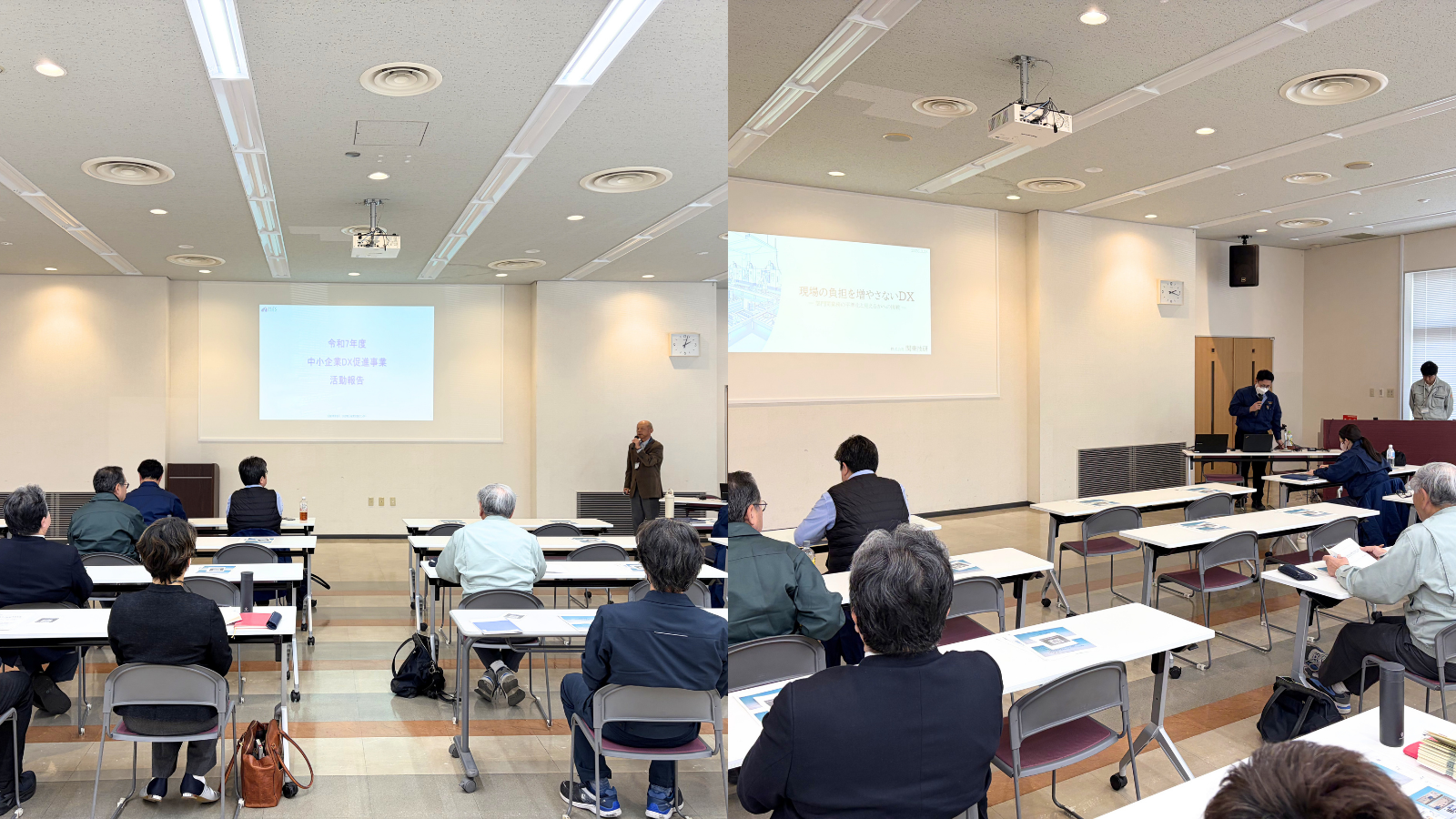令和8年3月24日(火)、日立地区産業支援センターにて「令和7年度 中小企業DX促進事業 活動状況報告および事例発表会」を開催いたしました。当日は地元の製造業関係者や支援機関など、総勢26名の方々にご出席いただき、今年度の活動状況や、DXの事例をお話しいただき、DXの実践のポイントを学ぶ場となりました。