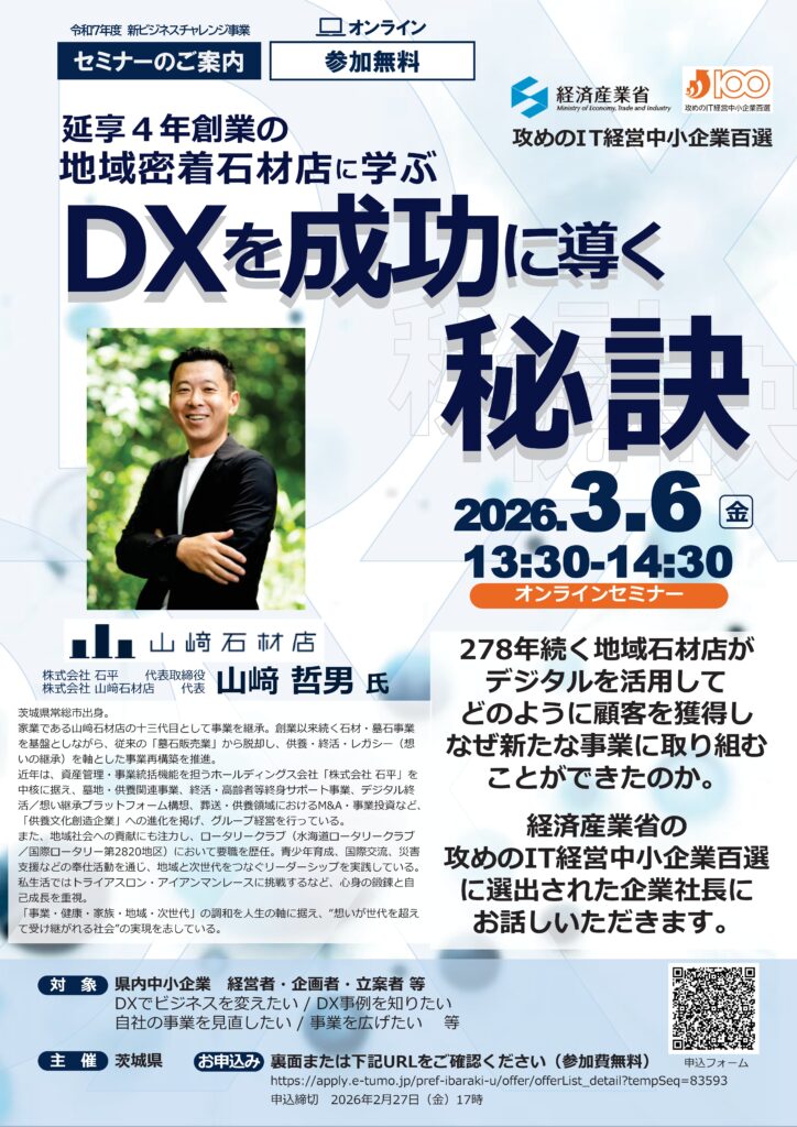 セミナー「~延享4年創業の地域密着石材店に学ぶ~ DXを成功に導く秘訣」のご案内【開催日:3/6】|セミ…